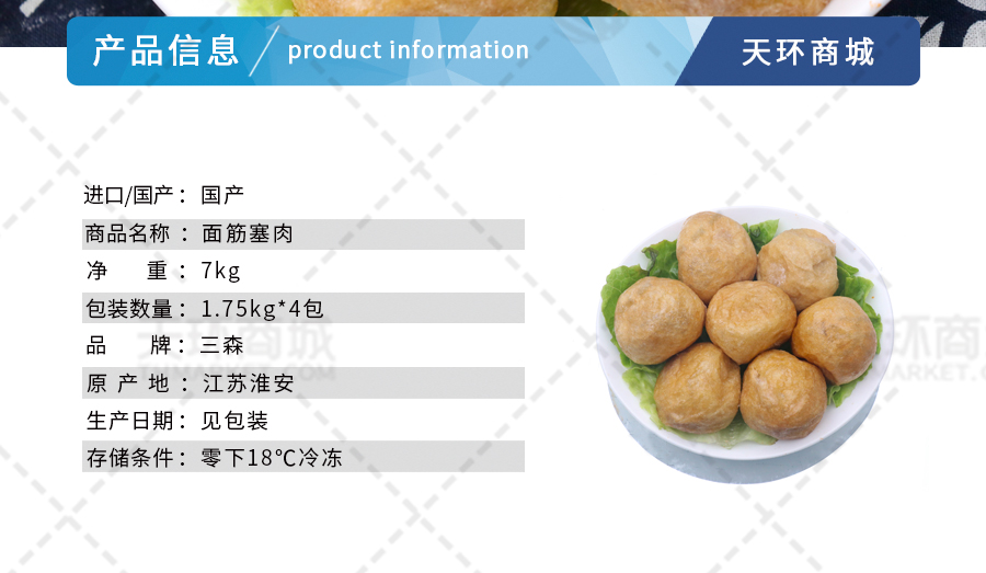 商品名称:【三森】面筋塞肉35g 1.75kg*4包 7kg