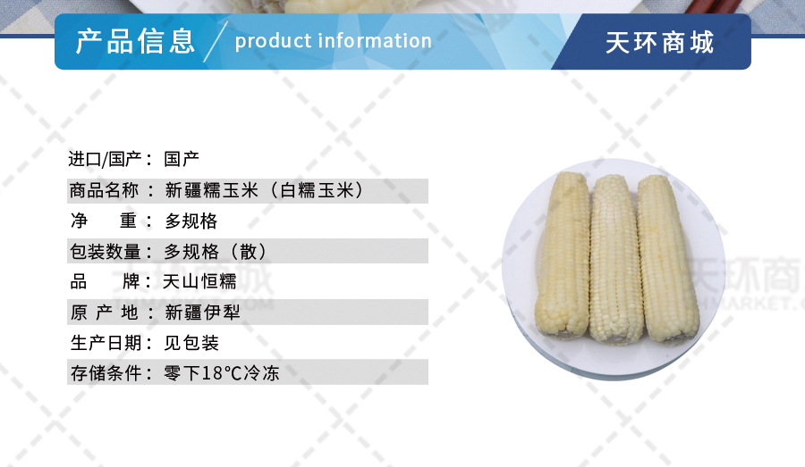 商品名称:【天山恒糯】新疆糯玉米(白糯玉米) 多规格(散)