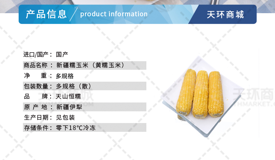 商品名称:【天山恒糯】新疆糯玉米(黄糯玉米)多规格(散)