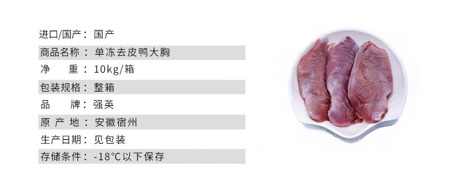 商品名称:【强英】单冻去皮鸭大胸 约50个 10kg