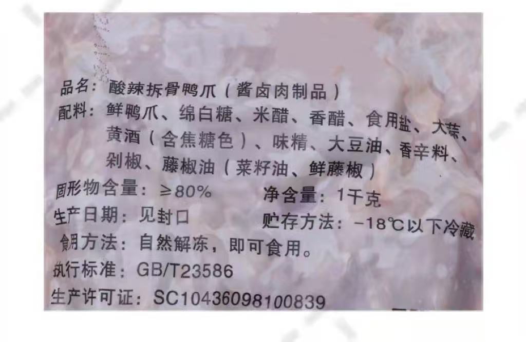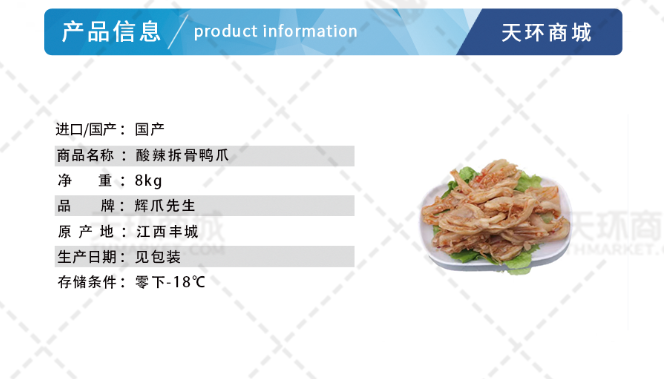 商品名称:【辉爪先生】酸辣拆骨鸭爪 1kg*8包 8kg