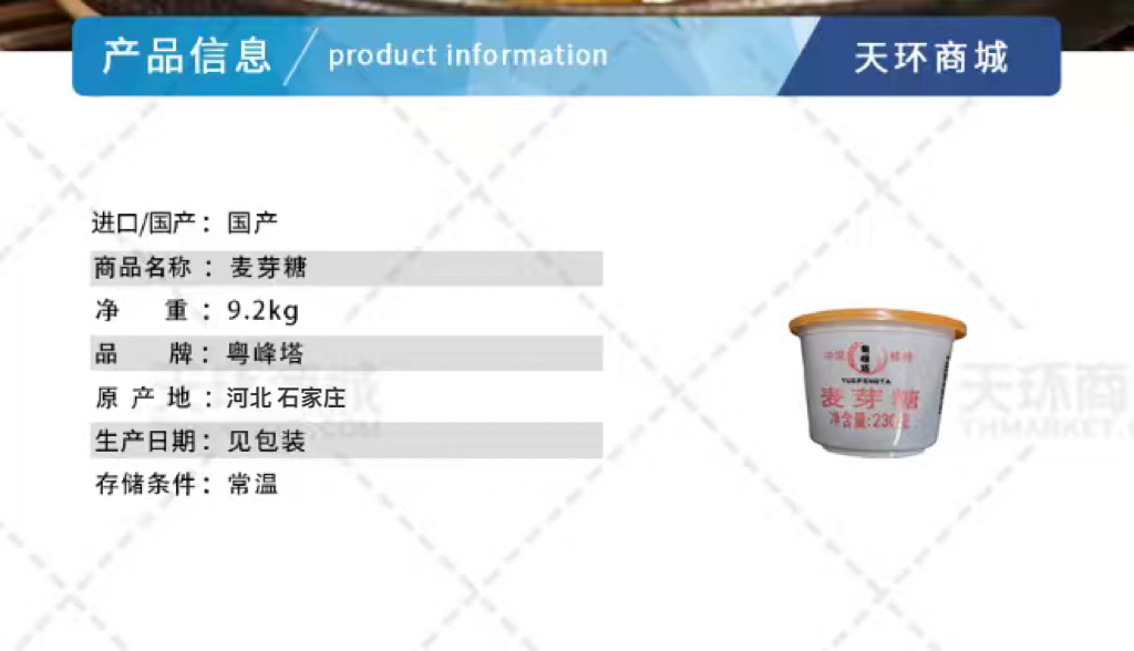 商品名称:【粤峰塔】麦芽糖 230g*40杯 9.2kg