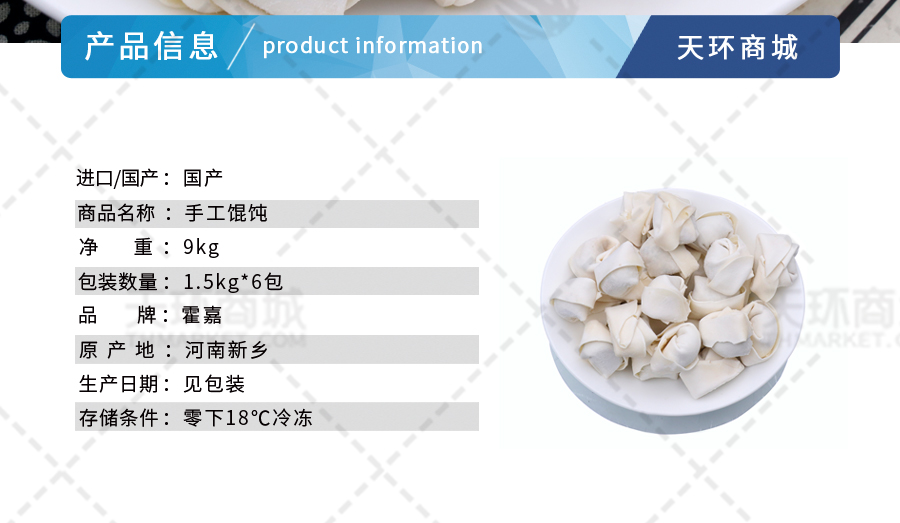 商品名称:【易化冻】【霍嘉】手工馄饨 1.5kg*6包 9kg