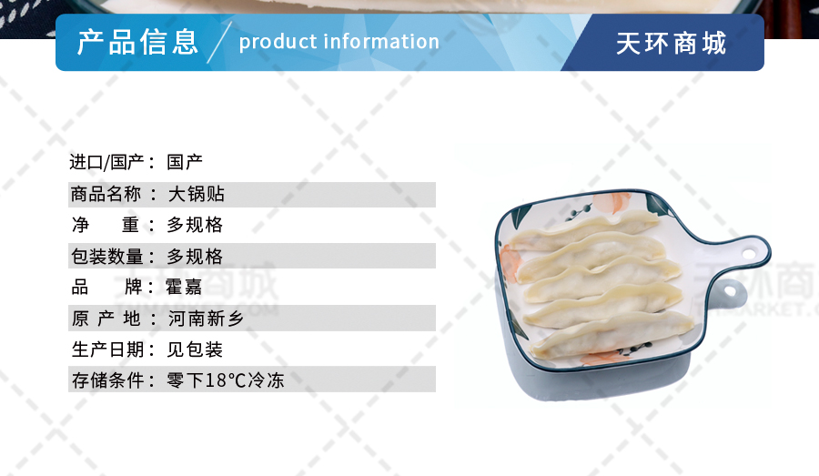 商品名称:【霍嘉】大锅贴 多口味 1kg*8包 8kg