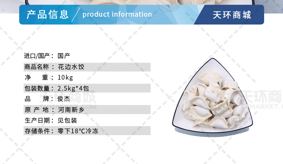 商品名称:【易化冻】【俊杰】花边水饺 多口味 2.5kg*4包 10kg