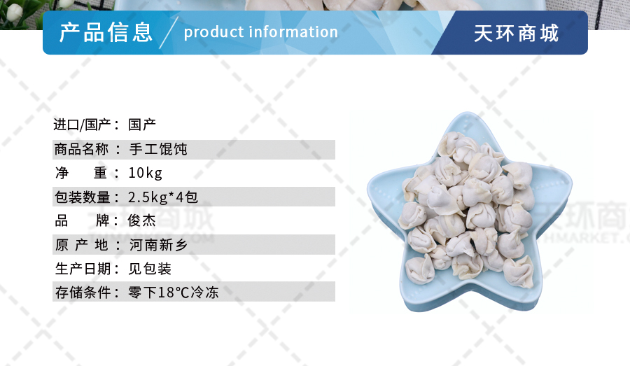 商品名称:【易化冻】【俊杰】手工馄饨 2.5kg*4包 10kg