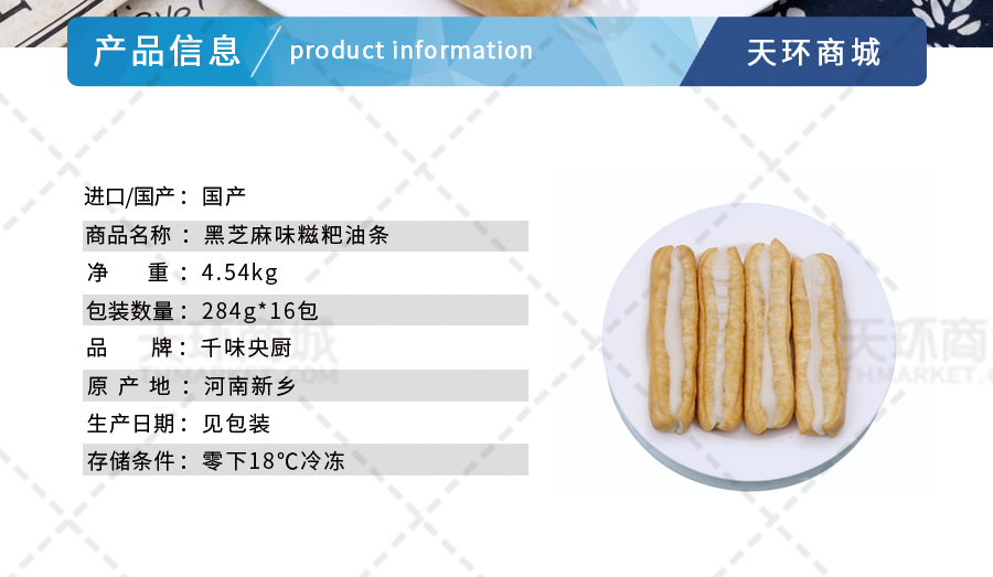商品名称:【千味央厨】黑芝麻味糍粑油条 284g*16包 4.54kg