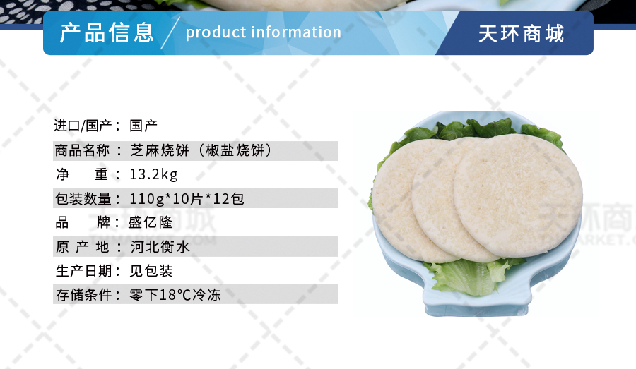 商品名称:【易化冻】【盛亿隆】芝麻烧饼(椒盐烧饼) 110g*10个*12包 13.2kg