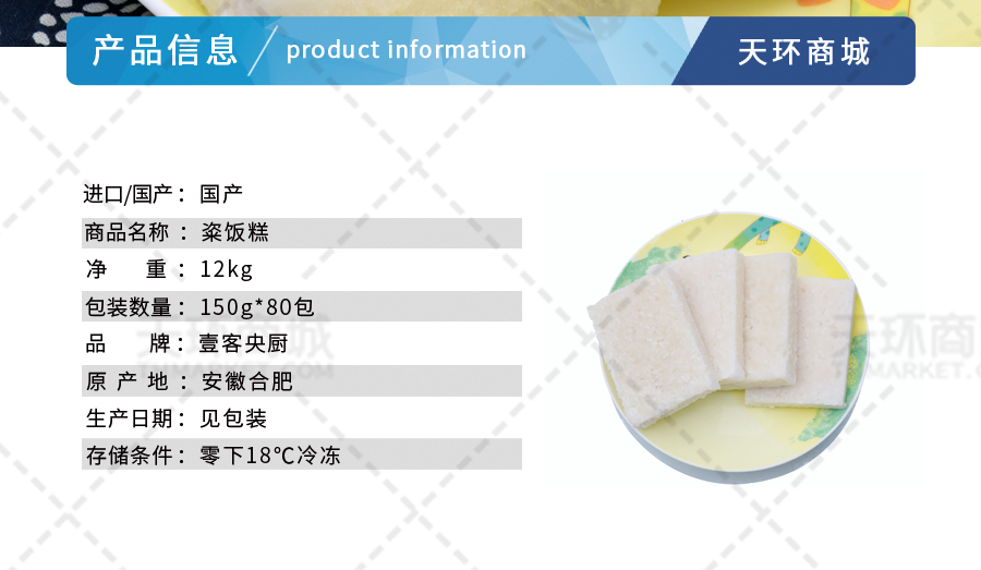 商品名称:【壹客央厨】粢饭糕 150g*80包 12kg