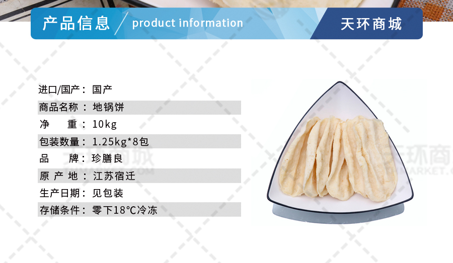 商品名称:【珍膳良】地锅饼 1.25kg*8包 10kg