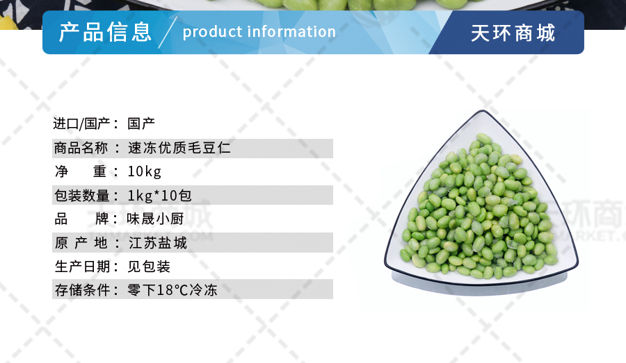商品名称:【味晟小厨】速冻优质毛豆仁 1kg*10包 10kg