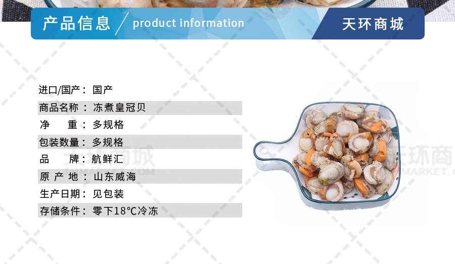 商品名称:【航鲜汇】冻煮皇冠贝 多规格 5kg