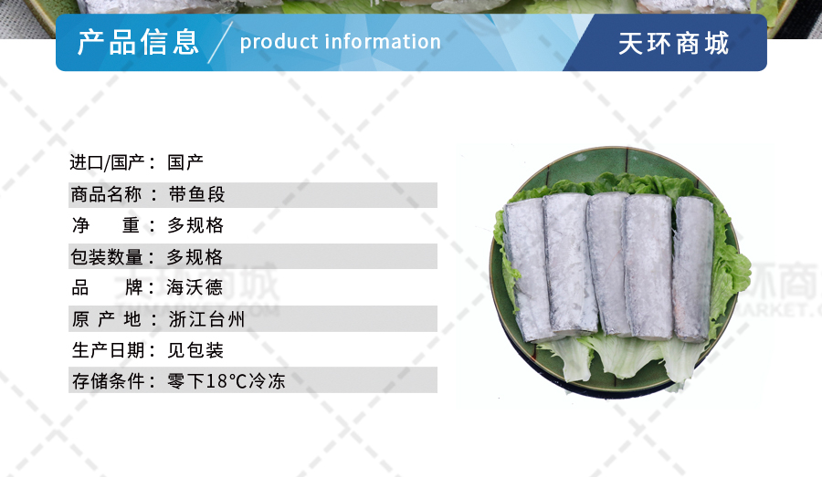 商品名称:【海沃德】带鱼段 多规格 7.5kg