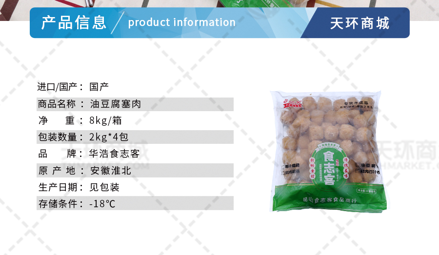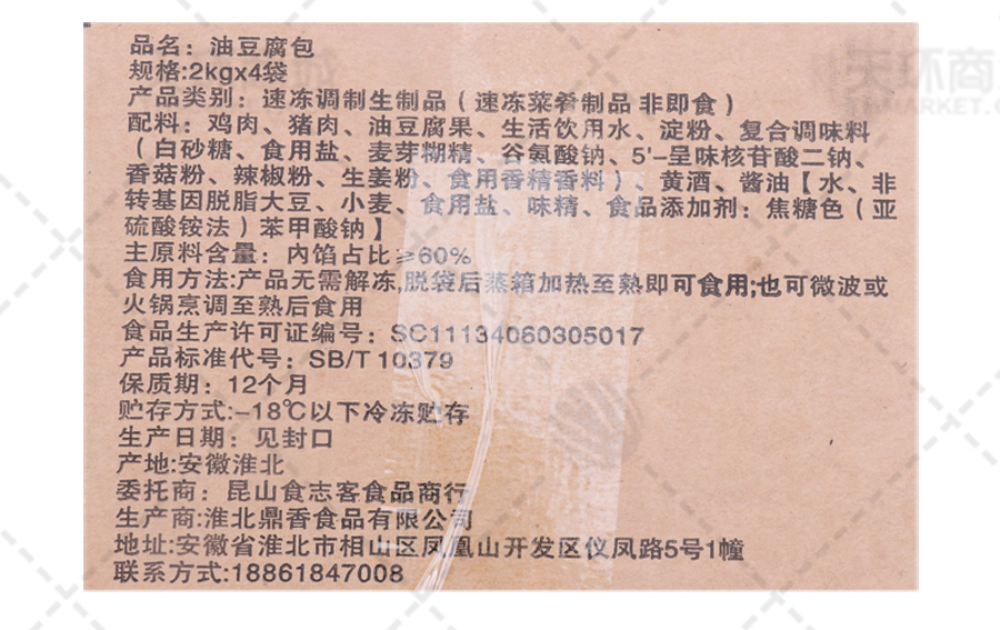 商品名称:【华浩食志客】油豆腐塞肉/油豆腐包 35g约220个 8kg