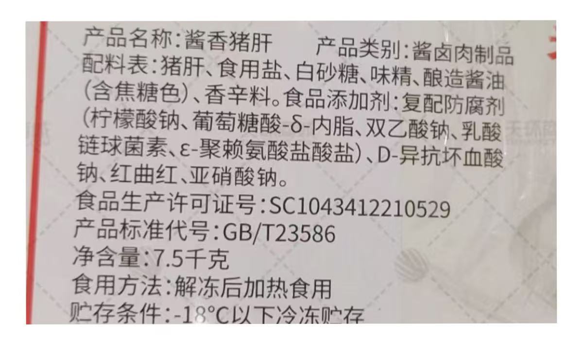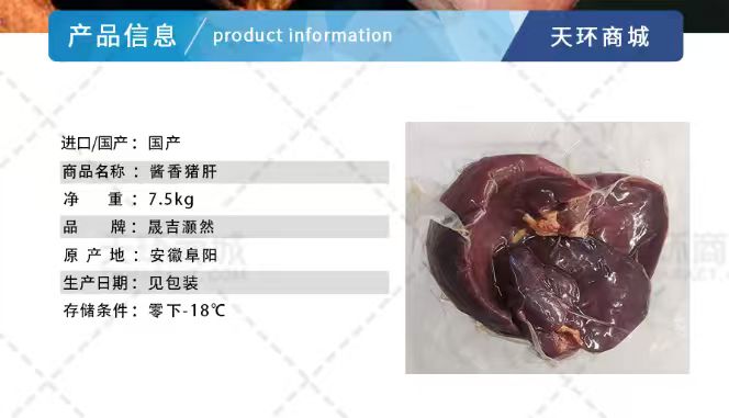商品名称:【晟吉灏然】酱香猪肝 7.5kg