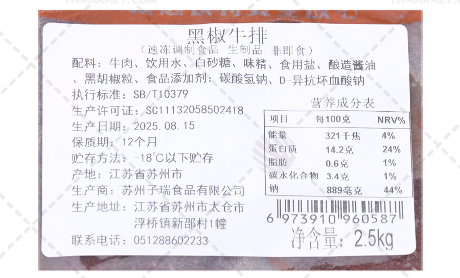 • 存储条件:-18℃以下保存