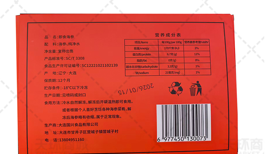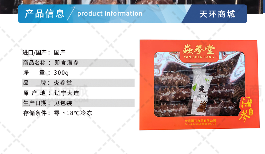 商品名称:【炎参堂】即食海参 8只盒装 300g/盒 4盒起售