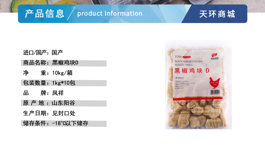 商品名称:【凤祥】黑椒鸡块D 约15-20g/块 1kg*10包 10kg