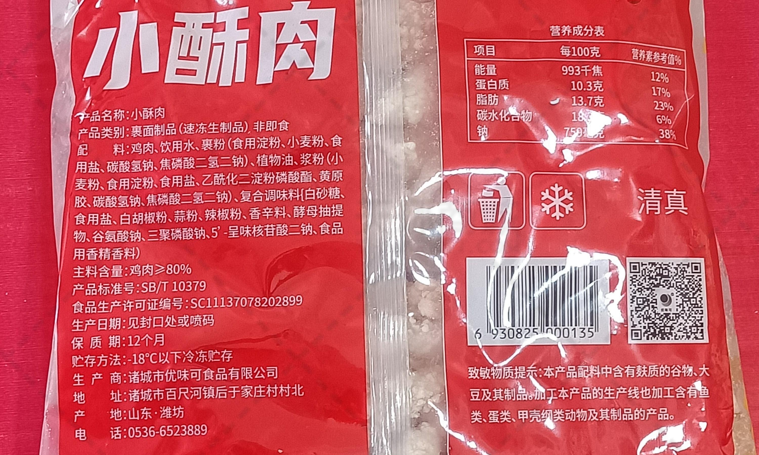 商品名称:【优味可】小酥肉 800g*10袋 8kg