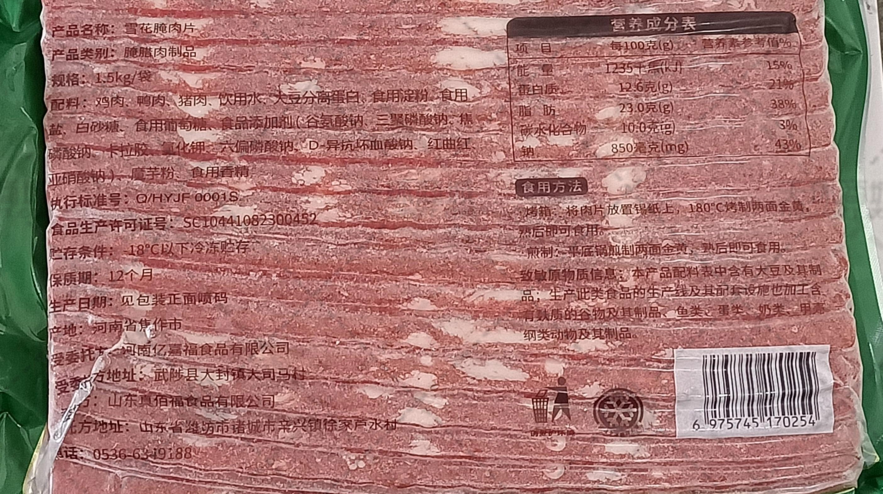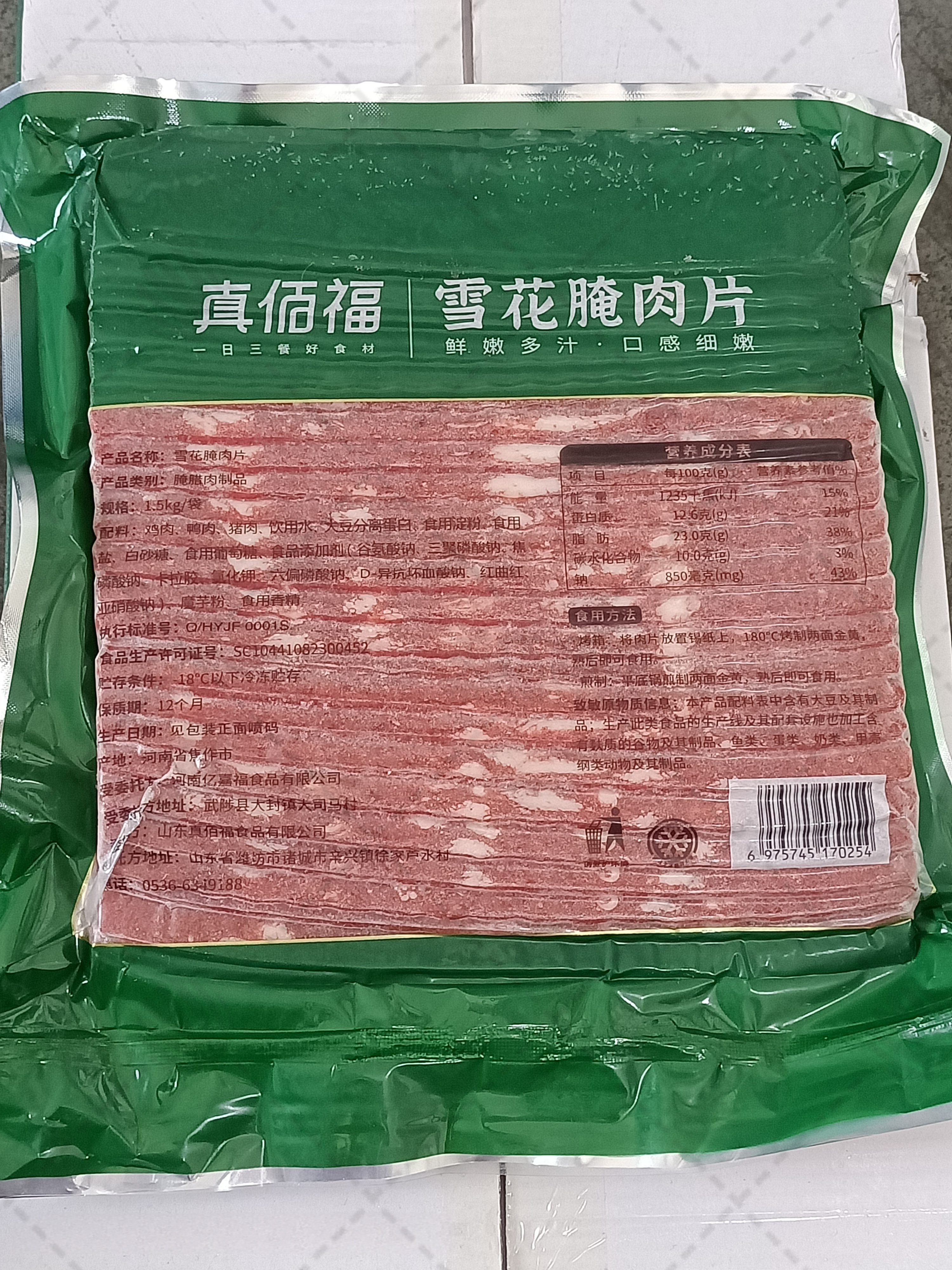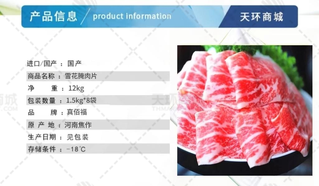 商品名称:【真佰福】雪花腌肉片 1.5kg*8袋 12kg