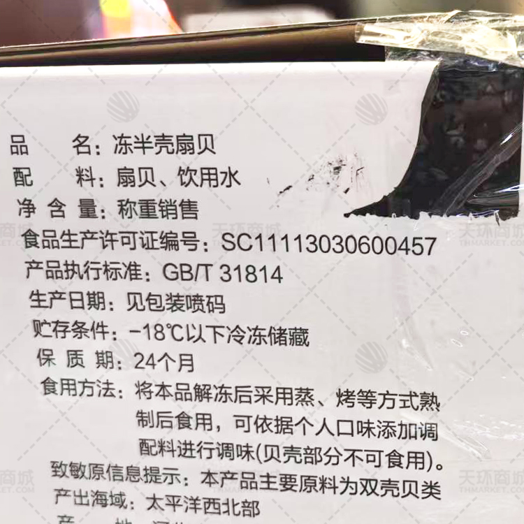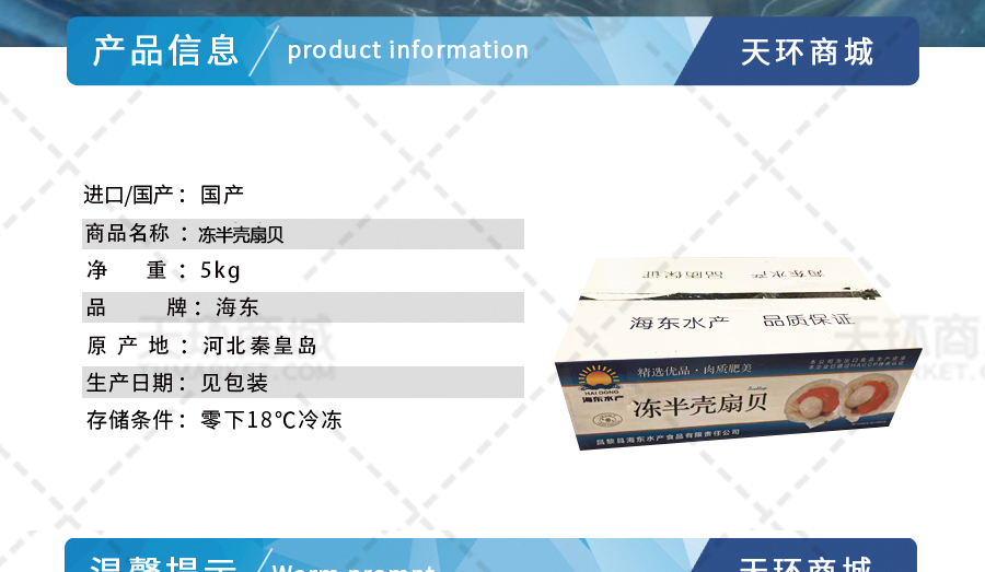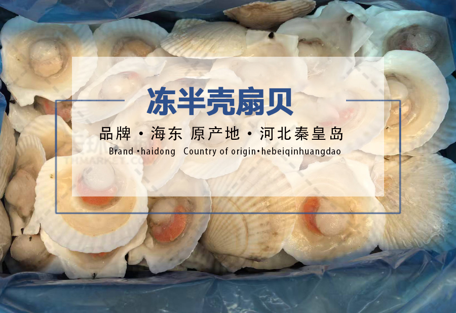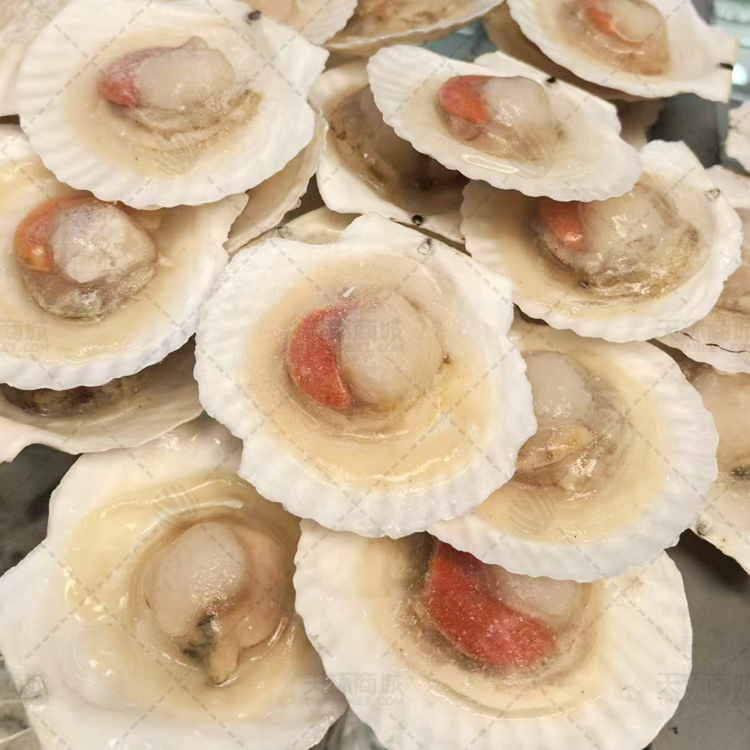 商品名称:【海东】冻半壳扇贝 9-10 散装 80粒 5kg