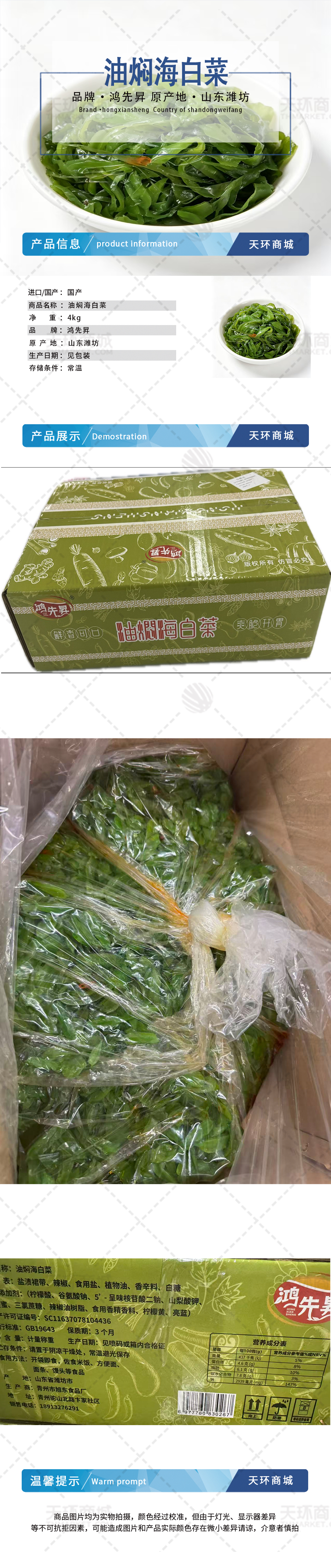 商品名称:【鸿先昇】油焖海白菜 4kg