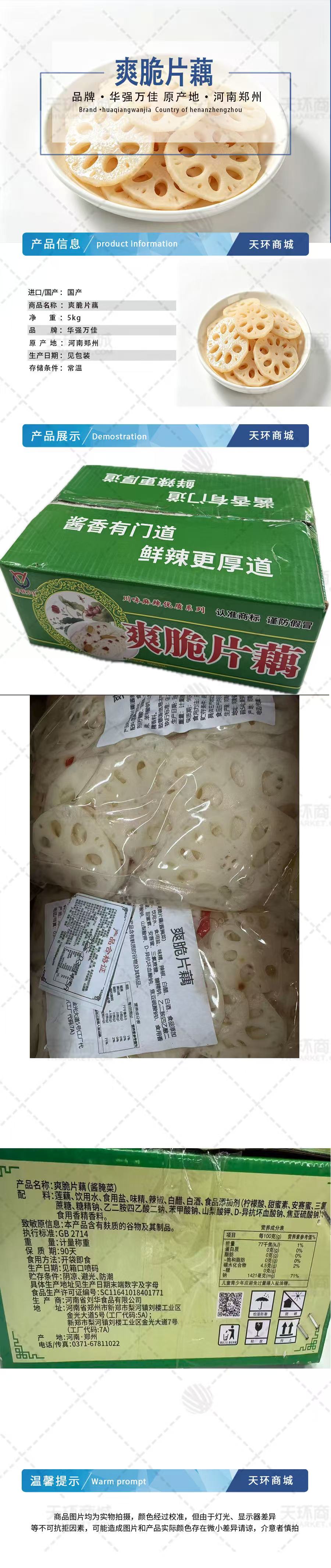 商品名称:【华强万佳】爽脆片藕 2.5kg*2袋 5kg