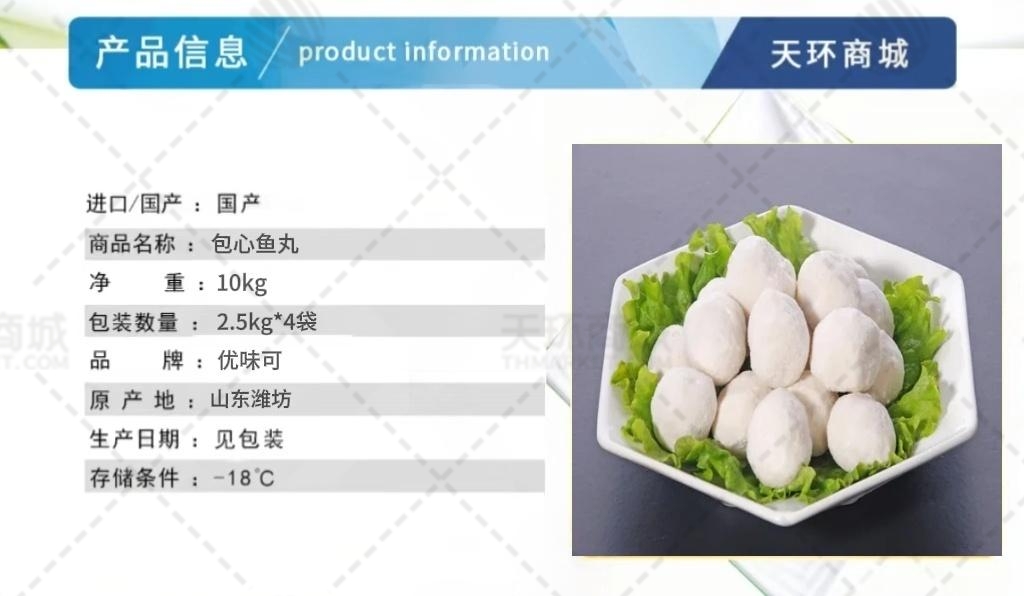 商品名称:【优味可】包心鱼丸 2.5kg*4袋 10kg